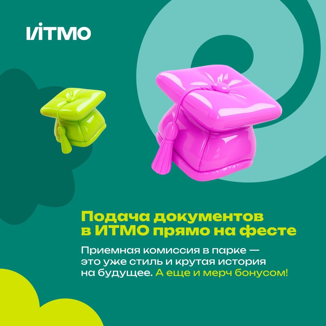 Го подадим документы в ИТМО прямо на фестивале? 12 июля на нашем летнем фестивале ITMO Family Day будет специальная зона для абитуриентов! Да, подать документы на поступление к нам ты можешь прямо там 😎 Что еще полезного будет для абитуриентов и их родителей? Рассказали в карточках ✨ 12 июля Парк 300-летия Санкт-Петербурга 10:00-18:00 - активности от факультетов ИТМО и партнеров (Сбер, Яндекс, Альфа) 18:00 - концерт The Hatters Регистрация по ссылке