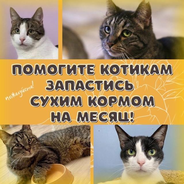 🆘Дорогие друзья, ПО-МО-ГИ-ТЕ!🆘 У котеек беда — еда закончилась. Совсем. Последние 12 пачек сухарей Мурзик привез в наш приют в долг. 🙀 Как бы мы ни старались наскрести по сусекам хоть что-нибудь, денег нет совсем, а кормить хвостиков нужно ежедневно... 🥺 И мы слезно просим вас поддержать в новом выкупе набора сухого основного корма для котиков, которого хватит на целый сытый месяц.🙏 Пожалуйста, помощники, откликнитесь! 🙏 Любая, даже самая маленькая сумма, будь то 10 рублей, играет огромную роль в столь важном сборе. ❗️ Будем бесконечно благодарны за отзывчивость и доброту! 🥺 ✅ Нужный нам корм можно глянуть вот тут, он отмечен ярлычком "самое нужное" https://murzikshop.ru/shop/pomosch-priyutam/murzilki/ Корм собираем с частичными оплатами*. Это значит, что есть возможность внести в общий сбор ЛЮБУЮ сумму, хоть 1, 10, 50 рублей - всё пойдет в общую копилочку большого мешка корма. Будем признательный любой помощи! Корм доставят к нам в приют, в удобное для нас время и передадут п