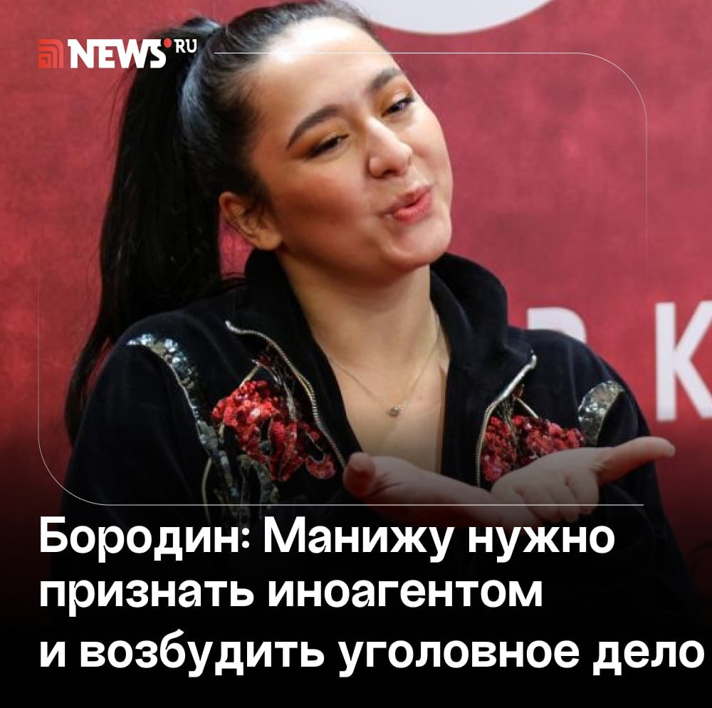⭕⭕️ Осуждала СВО и имеет связи с Пугачевой и Галкиным*? Певицу Манижу нужно признать иноагентом и возбудить против нее уголовное дело, заявил Бородин. Глава ФПБК также настаивает, чтобы артистку проверили на иностранное финансирование. Скандал разгорелся после возвращения Манижи в РФ — она в столичном клубе The Hat Moscow прочла лекцию о пересечении музыки и архитектуры. Появление артистки, которая осуждала СВО и жалела террористов после массового убийства в «Крокусе», вызвало бурную реакцию. «Я не понимаю организаторов мероприятия с ее участием. Много недовольных граждан, слышавших высказывание. Надо было ее проверять, когда она высказывалась о "Крокусе"», — добавил Бородин в разговоре с NEWS ru. Депутат Госдумы Виталий Милонов назвал организаторов планировавшегося концерта в Москве врагами и бессовестными людьми. Он также заинтересовался, кем является продюсер артистки. * — внесен Минюстом РФ в список иноагентов ⭕ Подписаться | Прислать новость | Буст