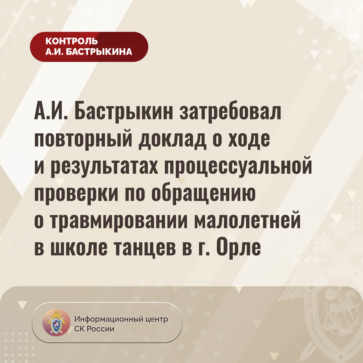 А.И. Бастрыкин затребовал повторный доклад о ходе и результатах процессуальной проверки по обращению о травмировании малолетней в школе танцев в г. Орле