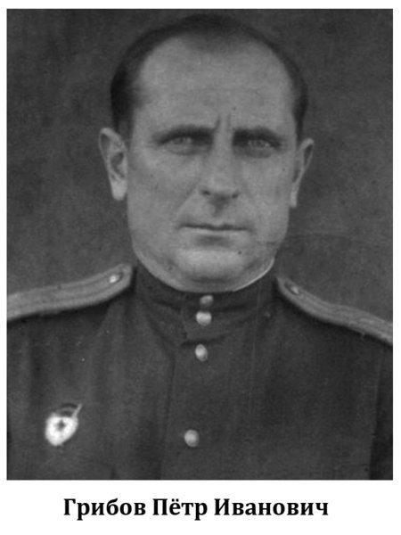 Пётр Иванович Грибов (4 июля 1902, Саратов, Российская империя –22 марта 1945 года (42 года), Веспрем, Венгрия) — гвардии полковник, Герой Советского Союза. В Великую Отечественную войну — командир 6-й гвардейской мотострелковой бригады. В Красной Армии с 1922 года. В 1925 году окончил военную пехотную школу, в 1932 году — курсы усовершенствования командно-начальствующего состава, в 1940 году — курсы "Выстрел". С июня 1942 года сражался на Юго-Западном, Донском, Воронежском, 1-м, 2-м, и 3-м Украинских фронтах. Принимал участие в Сталинградской битве, Воронежско-Касторненской наступательной операции, Курской битве, освобождении Украины, Молдавии, Румынии и Венгрии. Командир 6-й гвардейской мотострелковой бригады 5-го гвардейского танкового корпуса гвардии полковник Грибов отличился при разгроме немецко-фашистской группировки в районе озера Балатон в марте 1945 года. Его бригада овладела городами Варпалота, Варошлёд, Девечер, и Яношхаза, уничтожила и захватила много боевой техники и ж