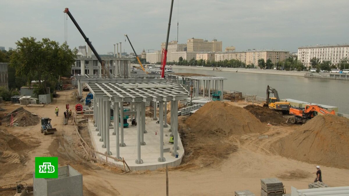 [ Смотреть видео на сайте НТВ ] На Пушкинской набережной в Парке Горького осенью появятся два новых павильона. В Парке Горького полным ходом идет масштабное благоустройство Пушкинской набережной. Уже осенью этого года там появятся два новых павильона. Они будут выполнены в виде круизного лайнера. Для фасадов одного из них используют витражное остекление от пола до потолка, а на кровле оборудуют смотровую площадку и уложат плиты с подогревом. Еще один многофункциональный павильон строят рядом с Крымским мостом. Там будет несколько входов, в том числе и со стороны набережной. Перед каждым из них оборудуют амфитеатр и зеленый холм. Павел Наумов, начальник отдела департамента капитального ремонта Москвы: «Второй павильон, К-6, общей площадью 3,5 тысячи квадратных метров. В настоящее время выполняются работы на металлическом каркасе, сооружение плит перекрытия. У нас предусмотрено благоустройство многофункционального комплекса, в том числе ресторанов, зон для проведения мероприятий и различ