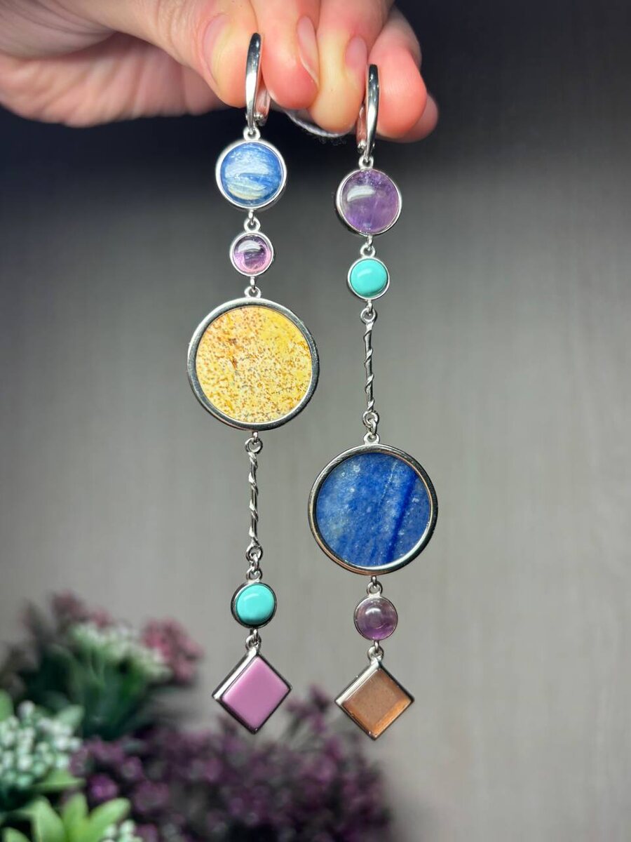 ПРОДАНЫ Покажем еще немножко новинок ❤️🔥 Длинные асимметричные серьги для настоящих ценительниц креатива и эксклюзива 😉 💎 Яшма, кианит, аметист, фосфосидерит, магнезит, солнечный камень, синий авантюрин 📏 Длина 10,5 см ✨ Цена 12800₽ Оформить заказ можно в личных сообщениях 👉🏼 @okstetatet, остерегайтесь мошенников - мы никогда не пишем первыми!
