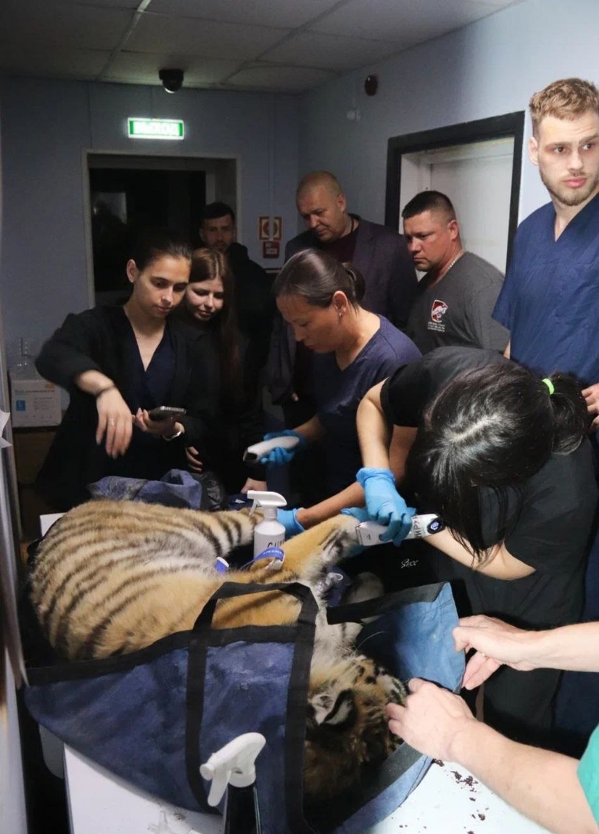 Информация о тигрице Ольге. При наблюдении за редкой хищницей, специалисты сначала отметили её неудачную попытку поймать кроликов, а применение камер ночного видения позволило выявить отсутствие свечения правого глаза. Помимо этого, у тигрицы резко изменилось отношение к людям — она перестала испытывать перед ними страх. Учитывая эти тревожные симптомы, было принято решение о дополнительном ветеринарном осмотре. В процесс были вовлечены офтальмологи, проведены компьютерная и магнитно-резонансная томография, а также расширенные лабораторные исследования. Выводы обследования оказались неблагоприятными. С правой стороны у тигрицы выявили зрелую катаракту, также начался процесс смены зубов, но из-за образовавшегося свища, довольно частого явления в этот период, воспаление распространилось на нервную ткань нижней челюсти и выше, что с большей долей вероятности и привело к, выявленному на МРТ, воспалению оболочек головного мозга – менингиту. Это, вероятнее всего, и вызвало аномальное пове