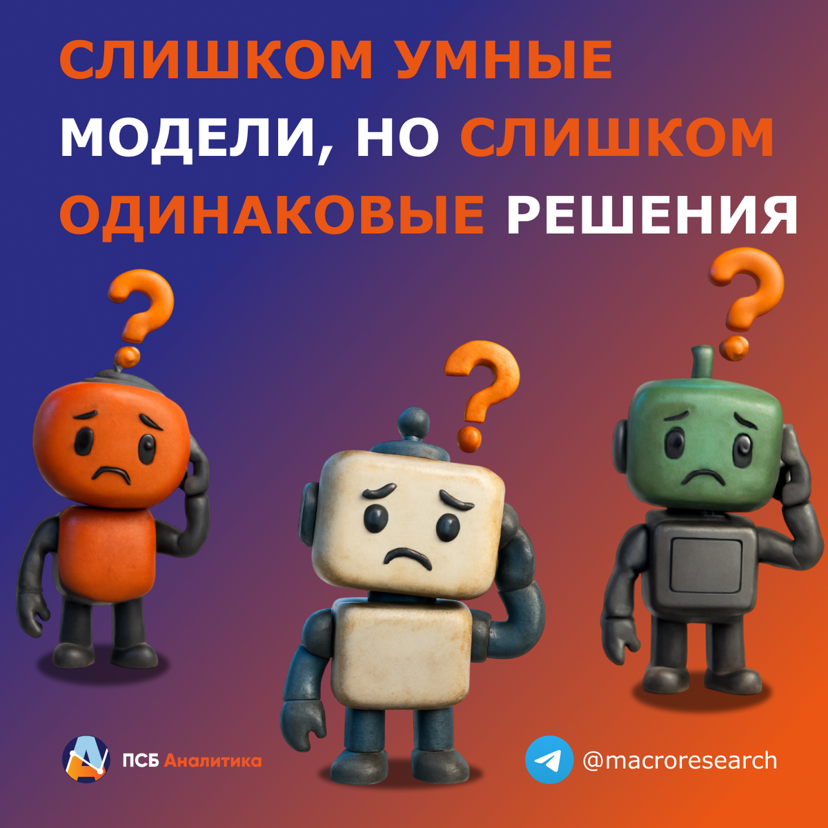 ❗️Проведите эксперимент (мы уже провели😎)❗️ Попросите нейросеть назвать случайное число от 1 до 50. Семь из восьми моделей выберут 27. Это число — не слишком большое, не маленькое, не крайнее и не банальное. Для ИИ, обученного на огромных массивах текстов, 27 оказывается своеобразной «золотой серединой». Это результат не настоящей случайности, а вероятностного выбора, который выглядит разумно. Другое популярное число 42 — и это уже отсылка к «Автостопом по Галактике», что говорит о влиянии культуры на “решения” ИИ. 🕯 А если такие же паттерны используются в трейдинге? Многие инвесторы и трейдеры используют ИИ-модели для технического анализа. Представим, что модель прогнозирует покупку, когда RSI опускается до 27 — ведь это тоже «оптимальное» число. Если тысячи трейдеров, аналитиков и ботов используют похожие модели, они будут одновременно видеть сигналы в одних и тех же точках рынка. Это создаёт эффект цифровой толпы: движение цены становится не реакцией на рынок, а результатом соглас