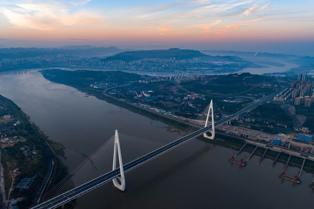 Мост будущего В Чунцине, городе, где мосты давно стали частью городской идентичности, появился новый символ инженерной мысли — мост Байцзюйсы. Его футуристичный облик и масштабные технические решения сделали его не только транспортной артерией, но и настоящей достопримечательностью для жителей и туристов. Общая длина моста — 1 384 метра, а основной пролет составляет 660 метров. Это крупнейший в мире вантовый мост с двухъярусной конструкцией для автомобильного и железнодорожного движения. Башни моста выполнены в форме гигантских водяных капель, что отсылает к культуре Чунцина, города, «рожденного и преображенного водой». Нижняя часть башни — прозрачное кольцо, через которое открывается вид на город, словно «глаз времени», наблюдающий за развитием мегаполиса. Главная башня достигает 236 метров — это эквивалент 84-этажного здания и самая высокая башня моста в центральных районах Чунцина. С наступлением вечера мост превращается в фантастическую декорацию: туман, игра света и тени, нап