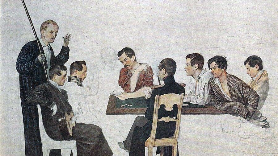 «Игра в карты. Групповой портрет художника в кругу товарищей по лейб-гвардии Финляндскому полку». Ок. 1840