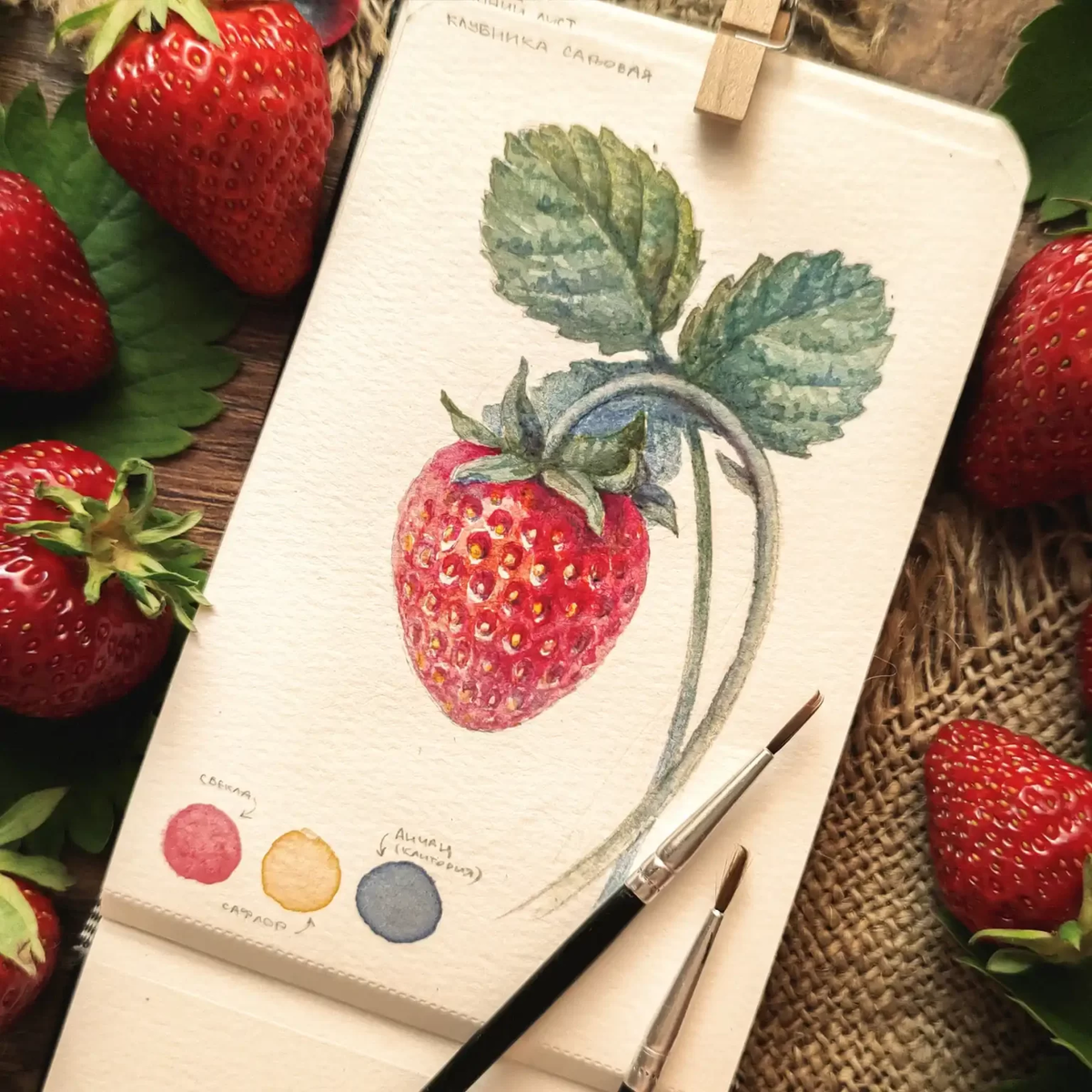 Сегодня я приглашаю вас в мой мир, где сочетаются любовь к природе, рисованию и натуральным краскам. Мы вместе нарисуем клубнику — но не обычными акварельными красками, а теми, которые я приготовила своими руками. Главный пигмент — свёкла. Да, обычная свёкла, которая живёт в каждом магазине и на каждой грядке.