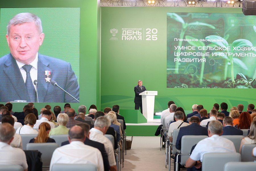 В Среднеахтубинском районе проходит ключевое мероприятие Всероссийского Дня поля. На пленарном заседании выступили Оксана Лут и Андрей Бочаров. Фото: пресс-служба администрации Волгоградской области Андрей Бочаров принял участие в пленарном заседании в рамках Дня поля. Мероприятие проходит в Среднеахтубинском районе, перед аграриями выступила министр сельского хозяйства Оксана Лут. Губернатор отметил, что за последнее десятилетие Волгоградская область в сфере АПК выполнила поставленные задачи, показала устойчивое поступательное развитие, вернулась в число регионов-лидеров страны по качеству и объемам агропроизводства. Регион показывает высокие результаты урожая растениеводстве, овощеводстве, производстве плодов и ягод. Губернатор также заявил, что решается задача достижения селекционного суверенитета. Одна из причин улучшения результата – развитие мелиорации. Важна в том числе цифровизация, ведется большая работа по подготовке необходимых для этого кадров. На пленарном заседании Андрей