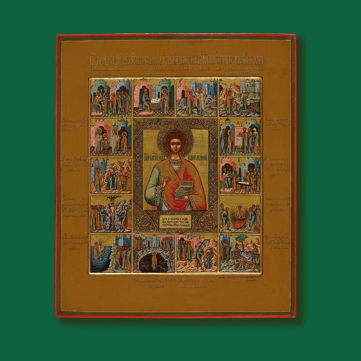 Образ святого Пантелеимона из коллекции музея В экспозиции иконописи XIX — начала XX века есть множество икон, поражающих виртуозностью письма. Среди них выделяется образ великомученика Пантелеимона. Рассказываем историю жизни святого и приглашаем полюбоваться миниатюрной живописью иконы. От Пантолеона к Пантелеимону Святой родился в знатной семье и получил имя Пантолеон — «Во всем лев». Уже в юности он стал блестящим врачом и был приближен ко двору императора Максимиана, гонителя христиан. Однажды Пантолеон познакомился со священником Ермолаем. Тот сказал, что лишь Христос может наделить его подлинным даром исцелять. Вскоре Пантолеон уверился в этом – по его молитве воскрес укушенный змеей ребенок. С тех пор юноша бесплатно лечил людей и помогал гонимым христианам. Об этом узнал император и попытался разубедить Пантолеона в его вере, а когда не вышло — приговорил к жестоким пыткам. Перед казнью с небес прозвучало новое имя святого: Пантелеимон — «Всемилостивый». Рассматриваем