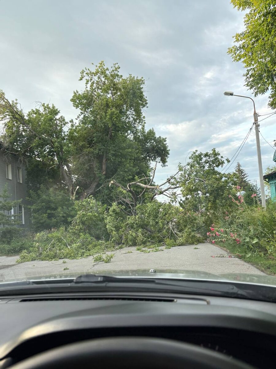 Продолжаем рассказывать о последствиях урагана в Омске Очевидцы рассказывают, что ветер по-всему городу сильно поломал деревья. Некоторые упали на электропровода и автомобили. Обломанные ветки разбросаны по дворам и детским площадкам. На 21я Амурской тополь вырвало с корнями. Огромный тополь упал на территории детского сада 176 на ул. Лукашевича. Упавшее дерево перегородило проезд на участке ул. 30 лет ВЛКСМ Бушевала непогода и в районах области. В Седельниковском районе тоже прошел сильный ливень с грозой. Из-за удара молнии дерево упало в Нижней Омке. К счастью, никто не пострадал.