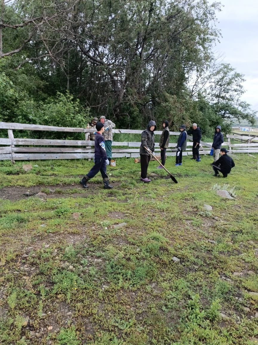 "Бөгөн Аҡминде йылғаһы буйындағы ҡойманың серегән бағаналарын яңынан ултыртыу, таҡталарын ҡатыу буйынса өмә үткәрелде