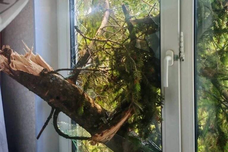 😨В Ленобласти поваленное ветром дерево разбило окно и влетело в квартиру