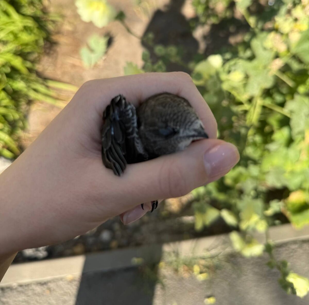 Добро… Сегодня у меня случилась интересная история 🫶🏻 По пути домой, я увидела, как кто-то перебирая крылышками ползет по земле… Это был выпавший из гнезда птенец 🐥 Пройдя мимо, я вернулась… Не зная, что делать, взяла его на руки и пошла домой. Он особо не пытался вырваться…чувствовал наверно, что я сама боюсь, да и не отпустила бы. Шла и думала…, как его кормить, где взять клетку и как отреагируют на все это мои кошки… и в мыслях появился мальчик из нашего двора, который любит птиц и ему не раз приходилось их выкармливать. ✔️ Встреча с мальчиком состоялась Не успев рассмотреть птенца, он сразу сказал «О, это птенец стрижа» и согласился взять его себе 🙏 И кстати летать он не умеет - зря я переживала, что он улетит от меня и крепко его держала 😊 Выйдя поблагодарить мальчика и переживая за птенца, я увидела, что птичка себя чувствует в его компании очень хорошо ❤️. Она сидит у него на руках и потихоньку пархает крылышками. Со спокойной душой я вернулась домой 🏠 Я восхищ