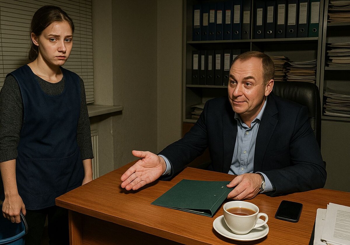 И правда, пожалела. Житья ей не стало. То в его кабинете каждый час убирайся — придирается к каждой пылинке. То в коридорах кто-то кофе разливает специально. То в туалетах мыло пропадает. И всё на неё валят — кто же ещё.