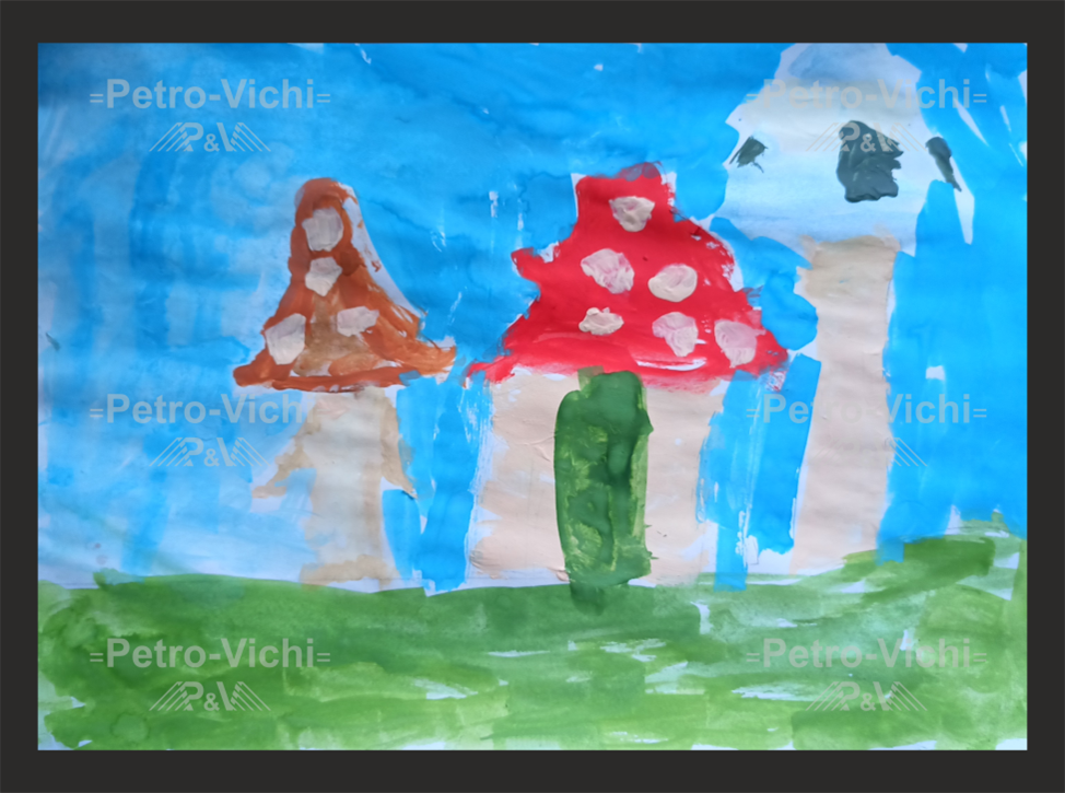 В очередной раз беру смелость быть личным биографом и критиком в творчестве моих детей. И готов познакомить с творчеством этих юных авторов. Как рождаются эти идеи? Вспомните, когда вы были ребёнком и мир казался безграничным. Взгляните на него глазами детства, где фантазия оживает, а невозможное становится реальным. Вспомните свои мечты, которые взрослые называли наивными. Отпустите сомнения и дайте волю воображению — возможно, именно там скрывается ваша гениальная идея. Когда твой ребёнок просит чистый лист бумаги, ты ещё не знаешь, что на нём появится. Но когда твой шестилетний малыш выдаёт тебе нечто подобное, ты понимаешь: перед тобой не просто рисунок, а настоящее произведение искусства. Он заполнил пространство белого листа с удивительной точностью и последовательностью. Сначала прорисовал дом, окружив его загадочными грибными деревьями, словно лес ожил перед глазами. Затем добавил небо, придав ему глубину и объём. В завершение штрихами добавил траву, лёгкими и уверенными движен