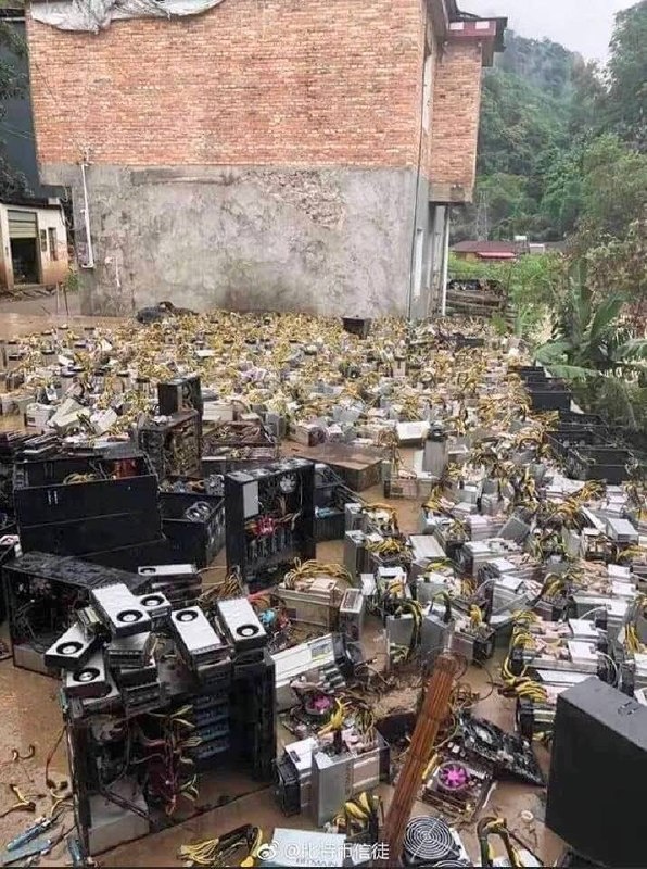 Майнинговая ферма криптовалют в Китае после наводнения... Вот как делают (точнее делали) деньги взрослые мальчики, это вам не майнинг на балконе :)