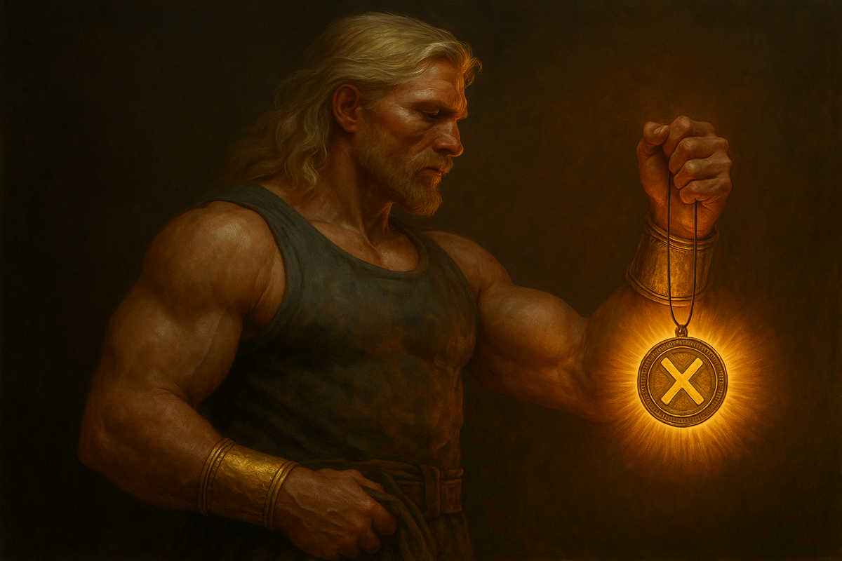 Это момент внутреннего пробуждения. До конца он ещё не прозрел, но уже увидел ложь, скрытую за блеском власти. С этого мгновения браслеты перестают быть знаком славы. Они становятся знаками рабства, внешне изящными, но по сути — оковами, выкованными из лжи и высокомерия.