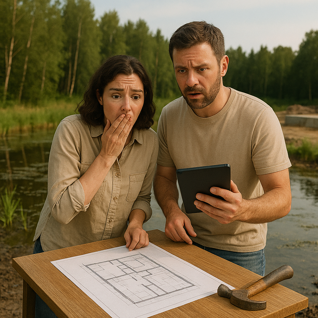 🏡 Как выбрать участок под загородный дом и не потерять 200 000 рублей? Вы мечтаете о доме. Представляете, как просыпаетесь под пение птиц, выходите с чашкой кофе на крыльцо, а вокруг — только тишина и природа. Но мечта о доме начинается не с проекта, не со стройки и даже не с покупки — а с выбора участка. И именно на этом шаге многие совершают самую дорогую ошибку. 💧 Представьте: только вы оформили участок, всё уже куплено, стройка почти на старте — и тут проходит дождь. Не ливень, не ураган — просто обычный затяжной дождь. Вы приезжаете, а на участке — лужи, болотистая жижа, вода по щиколотку. Построить ничего нельзя. Придётся вызывать технику, делать дренаж, усиливать фундамент, а это — дополнительные траты от 200 000 ₽. Звучит как страшилка? Увы, это — реальность, с которой мы сталкиваемся каждый сезон. 📸 Как это выглядит на практике? Мы недавно проехались по посёлкам Ленинградской области после сильных летних ливней. Картина была невесёлая: