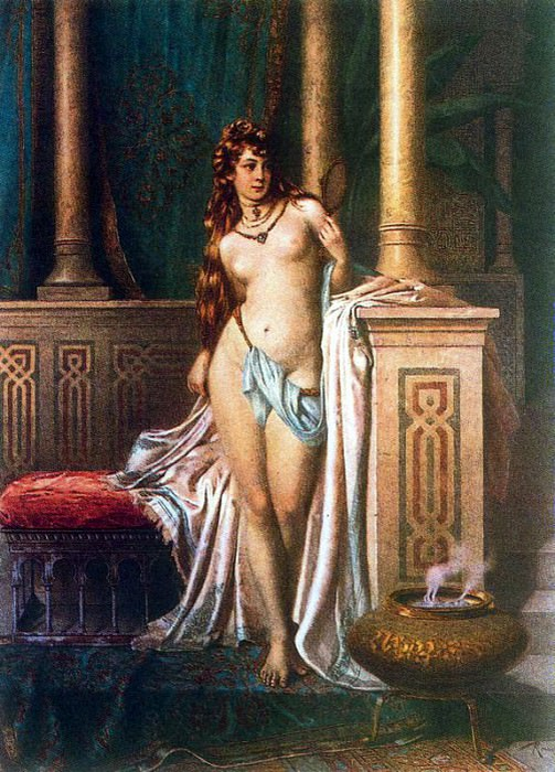 Особое место в его творчестве занимают сцены из жизни гаремов, где изображены женщины в роскошных драпировках, любующиеся своим отражением в зеркале, или отдыхающие в богатых интерьерах. Эти работы отличаются не только мастерством исполнения, но и тонким психологизмом, передающим атмосферу уединения, роскоши и чувственности.