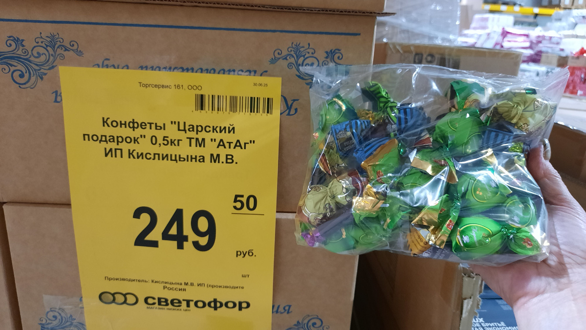 Всех приветствую, мои дорогие друзья и подписчики. Покажу вам товары в Светофоре, что есть в наличии. Светофор находится по адресу Ростовская область, Зерноградский район, город Зерноград, улица Садовая, 9А Начну обзор с конфет. Конфеты "Царский подарок" 0.5 кг цена 249.50 рублей. Мармелад глазированный "Фруктовый салют" 0.5 кг цена 149.90 рублей. Конфеты "По по"0.5 кг цена 174.90 рублей. Конфеты Фуршет 0.5 кг Сладкий орешек ООО цена 172.50 рублей. Набор кондитерских изделий Азовская КФ 1 кг цена 247.90 рублей. Мармелад желейный "Дольки со вкусом лимона", мармелад желейный Ассорти "Фруктово-ягодный микс", мармелад Жевательный фигурный "Весёлые мишки". Печенье Бисквитное в глазури со вкусом дыни и ананаса 1,2 кг цена 385.50 рублей. Соус соевый классический Soydon 1000 мл цена 71.90 рублей. Кетчуп Томатный Дар "Шашлычный " Томатный 750 г цена 58.50 рублей. Соус Кухмастер Аджика с цуккини и паприкой 260 г цена 50.90 рублей. Огурцы Волжский Погребок 900 мл цена 118.90 руб