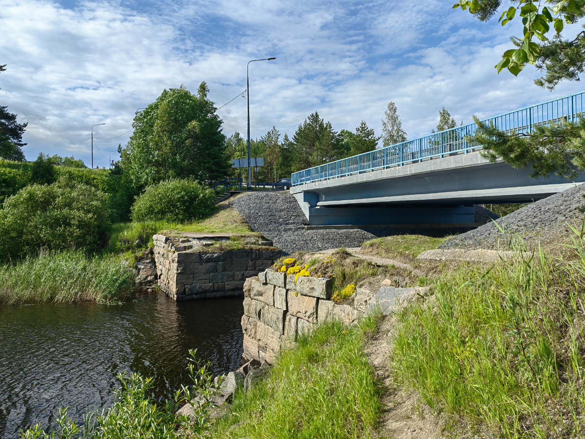 Наверное, это одно из самых живописных мест Сортавалы, откуда можно увидеть движение по железной дороге ретро-поезда "Рускеальский экспресс". Он идёт по этой косе (справа на фото). Но у нас не было времени его подождать.