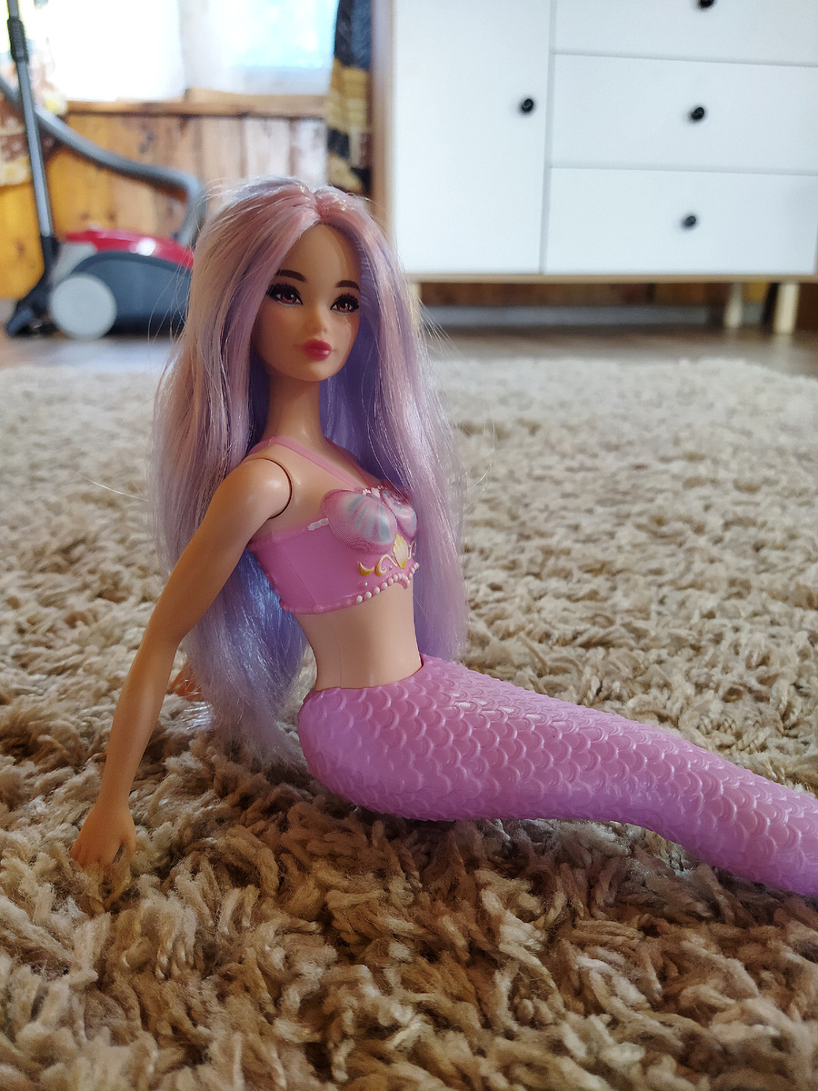Доброго дня, сохоббиты и гости канала! ☀️ Прошлая пятница неожиданно одарила нас по-настоящему летней погодой впервые за долгое время. Поэтому мы с дочкой собрались к маме на дачу, ловить эти чудесные (и редкие в этом году) мгновения летнего тепла. Во время сборов взгляд упал на Русалочку. Совсем она заскучала одна, даже беседы с подружками её не радуют. Надо думать! Обещала Хранитель про неё историю рассказать, да с принцем заморским познакомить, да всё никак не справится с этой затеей! Решено: поедет, красавица, со мной на первую в своей кукольной жизни прогулку))) Приехав на дачу, первым делом собрались попить чаю. А Русалочку я у окна посадила, осматривать красоту природы. А ей уж невтерпёж! Так и просится быстрее на свежий воздух, торопит нас))) Очень хотелось запечатлеть такую нежную куколку с цветами, а у мамы как раз цветут разные сорта роз! А самой русалочке больше всего понравились эти фиолетовые цветы))) Фотографировать куколку было не просто, к гибкому телу МТМ быстро п