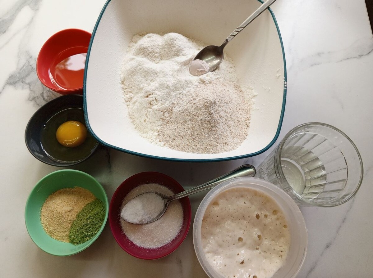 У меня уже есть на канале видео с рецептом такого хлеба на Левито Мадре. Сегодня же хочу поделиться рецептом, немного измененным и на закваске 100%-ой влажности. Кроме того, что я заменила закваску ЛМ на 100%-ой влажности, я увеличила количество воды и муки. Список и количество ингредиентов Вы найдете в конце статьи⤵! А еще при замесе теста я все ингредиенты сразу же поместила в дежу: сначала жидкие, затем уже твердые. Тесто вымешивала 10 минут. Сразу же замечу, что вкус и аромат этого хлеба совсем не похож на обычный хлеб: в нем смешение ароматов ванили, сушеных чеснока и лука! Да, я использовала сушеные чеснок (зеленые листья) и лук в измельченном в муку состоянии. Такой хлеб хорошо использовать с различными намазками или, например, с печеночным паштетом или луковым. И еще: я испекла его в форме для тостового хлеба. А это значит, что хлебушек хорошо режется на пластины толщиной в 1 см. Его можно приготовить в тостере, а при его отсутствии - поджарить до румяности на сухой сковор