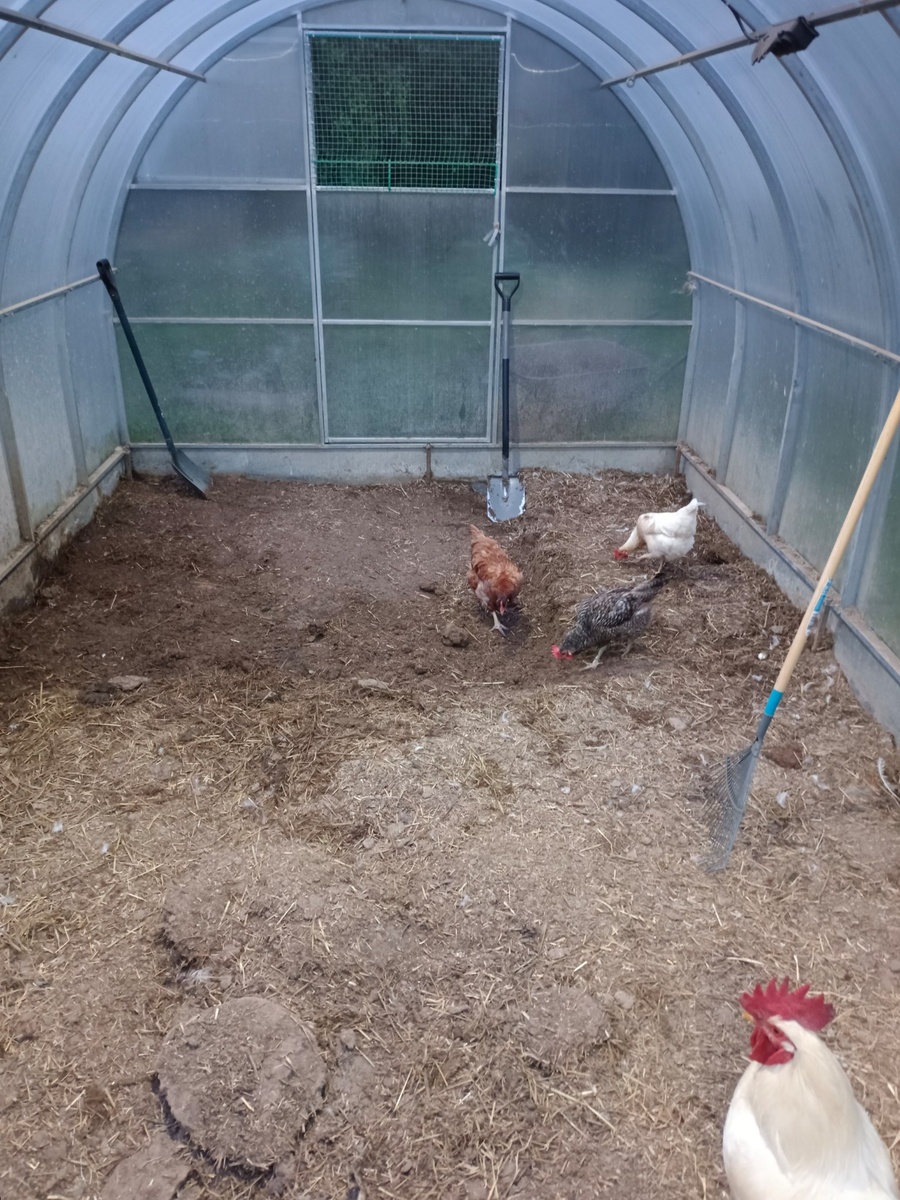 В среду закончил расчищать подстилку на тех шести квадратных метрах, где зимовали утки. Солома спрессована было крепко, даже штыковая лопата не могла воткнуться в эту подстилку. Но имея опыт расхищения снега, да со льдом — удалось вывезти более 10 тачек. На той территории где куры были там проще по лопате, но сложней по пыли. Думаю тоже разберу, как только Стёпку с командой отсюда уберу.