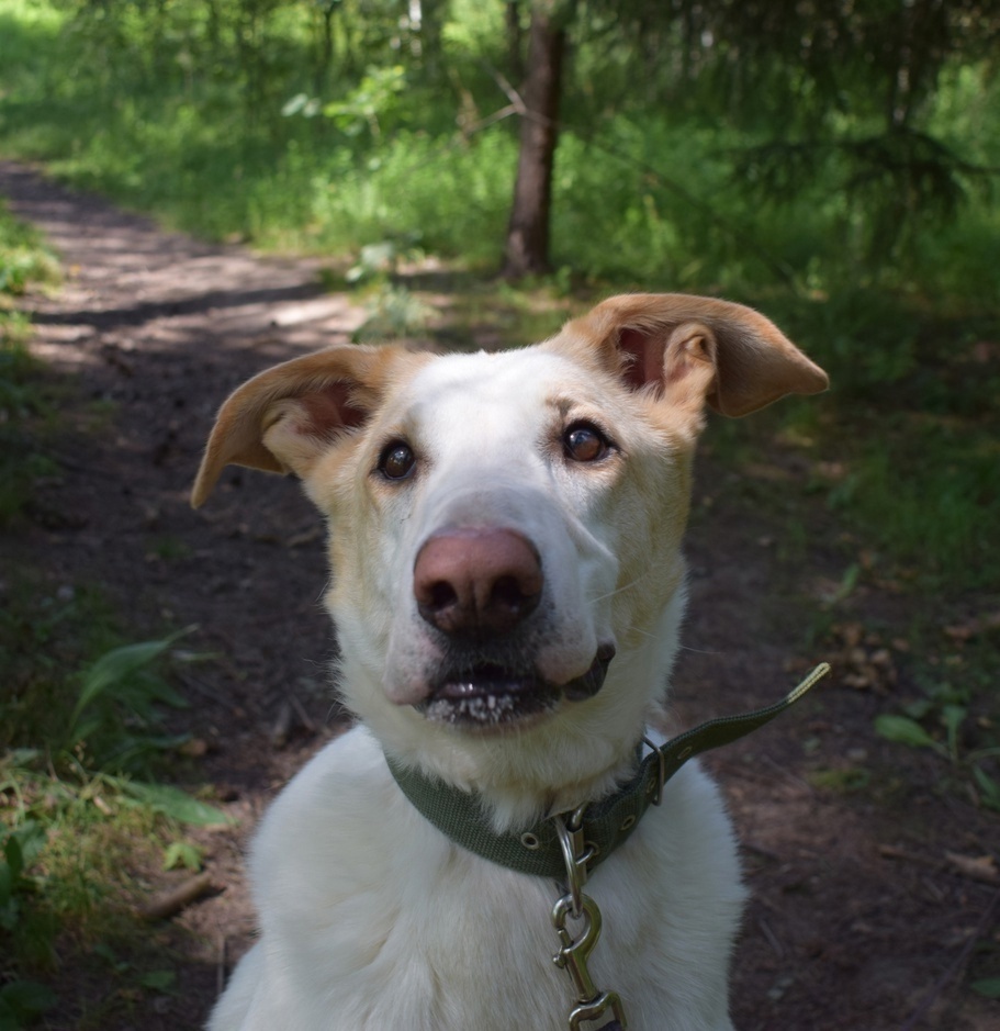По характеру он очень ласковый к людям, общительный пёс. С собаками противоположного пола хорошо ладит. До пристройства, в приюте, общался с детьми, в том числе маленькими, проблем не было.