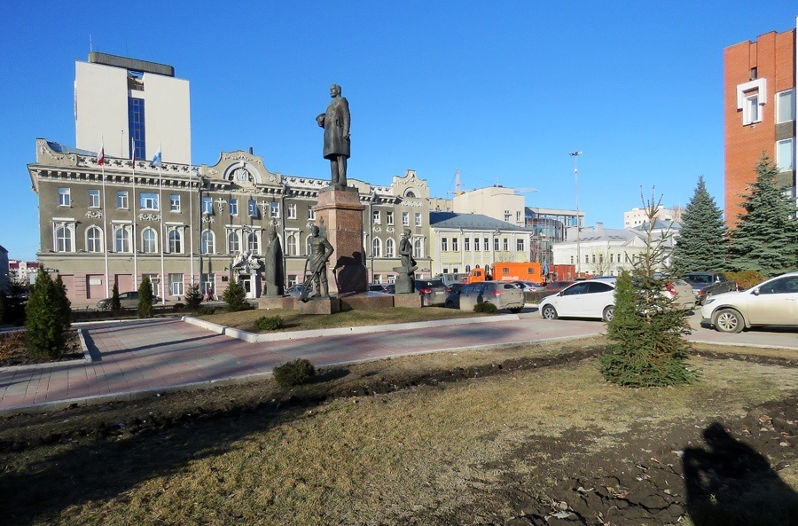 Саратов Между трёх зданий музея — небольшая площадь Столыпина вокруг памятника (2002) Петра Аркадьевичу. Прежде, чем возглавить МВД, в 1903-06 годах он успел поруководить Саратовской областью, и за три года сделал для неё немало, а позже из Петербурга ещё и университет сюда прислал. Памятник же из-за характерной композиции в народе называют Пятый элемент. На этой же площади — мэрия Саратова, занимающая огромный торговый дом купца Андрея (не Остапа!) Бендера, одного из крупнейших в России производителей ткани-сарпинки, с 18 века бывшей одно из специализаций Немецкого Поволжья. В основе здания — более скромный дом купца Кузнецова 1860-х годах, но Бендер перестроил его в столь привычных для саратовских шедевров 1913-15 годах. Более зрелищен другой его фасад рядом с Биржей, за которой пристроилась маленькая часовенка "Живоносный источник", заложенная в 1869 году в честь спасения Александра II от покушения Каракозова и строившаяся целых 6 лет, в которые поводов возблагодарить Бога за с
