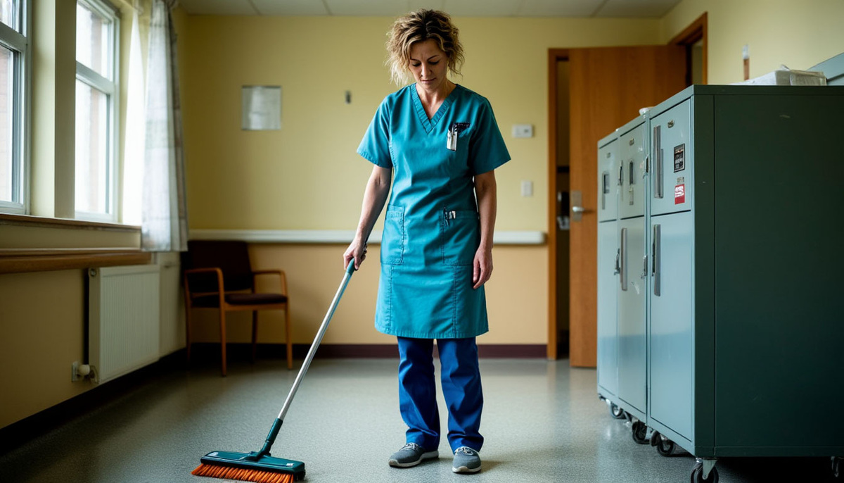 - 23:42 — Мария моет пол у сестринской комнаты.