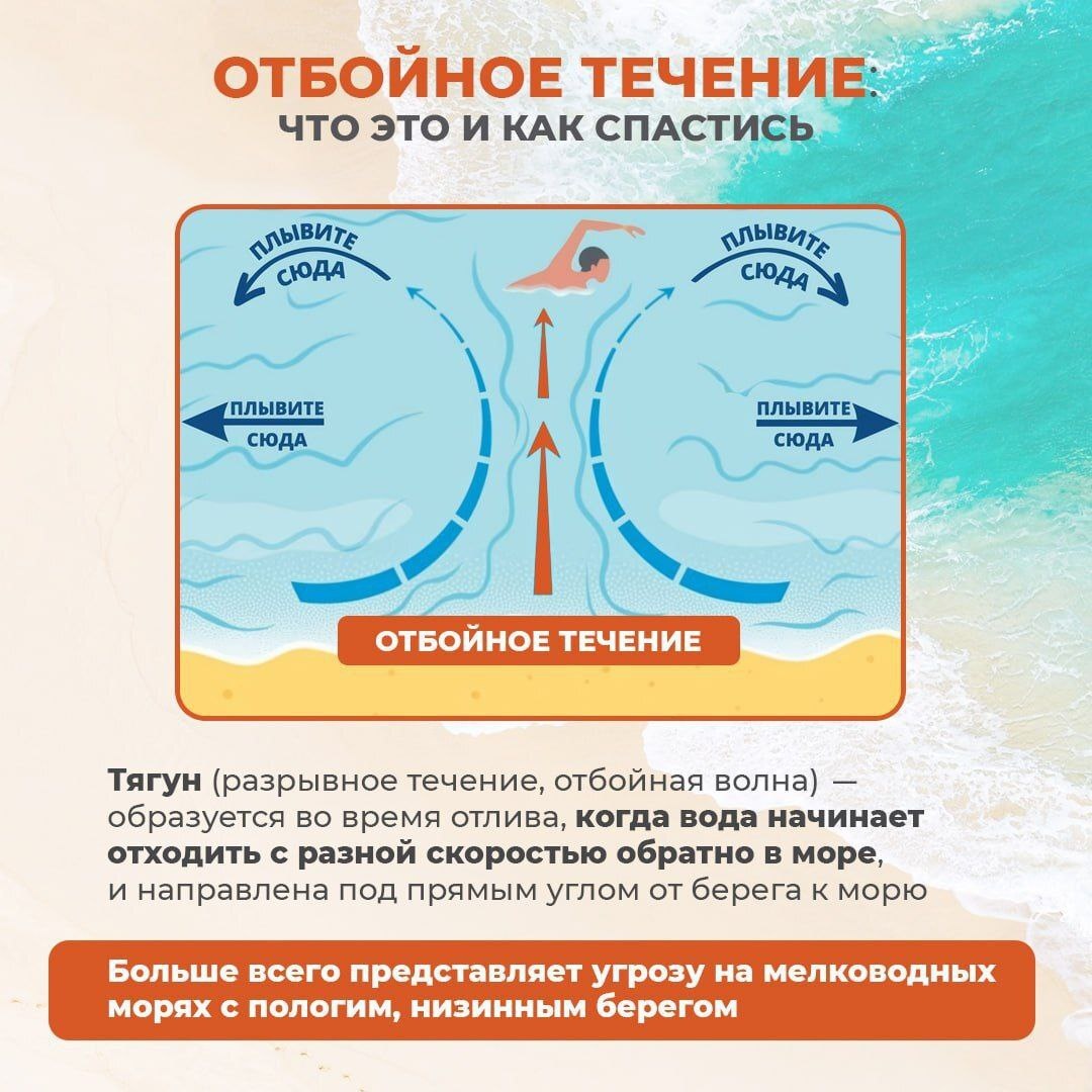 Лето - сезон отпусков! И большинство людей отправляются на море. ❗️Будьте осторожны! Во время купания в море можно попасть в отбойное течение! Что это такое и каких правил стоит придерживаться – читайте в карточках ⬆️ ☀️Пусть ваш отдых будет безопасным. Берегите себя и своих близких! Источник @primgochs #спасскдальний #спасск24 #безопасность_на_воде #МЧС