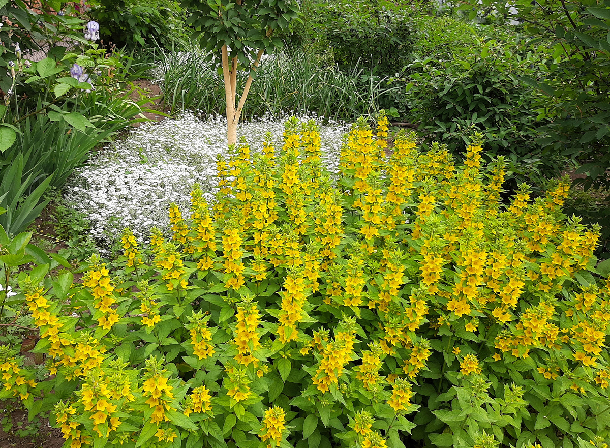 Когда-то, на заре освоения участка, я сделала графический шаблон, на котором с точностью до полуметра были отмечены деревья и кустарники, а затем добавились цветники. Каждый год в преддверии весны на нём рисовала места посадок, размечала грядки и действовала на посевной согласно утвержденному плану. Деревья были маленькими, кустарники - молодыми, многолетние цветы ещё не разрослись, а площадей под огород - хоть отбавляй. Потом деревья стали большими, а каких-то и нет уже. К старожилам добавились новые плодовые и ягодные культуры, увеличились куртины многолетников... В январе озадачилась новым шаблоном и как-нибудь покажу результат. Сейчас только вывод: нормальных грядок у меня быть не может. Это просто сад. Сад без огорода. Но в нынешний сезон есть всего по чуть-чуть. На самой большой томатной грядке 15 помидорных кустов. Чтобы не запутаться она называется Западной. Рассада - от Оли 💖. Кто здесь живёт? В настоящий момент всё выглядит красочнее и аппетитнее, но показывать жёлтые
