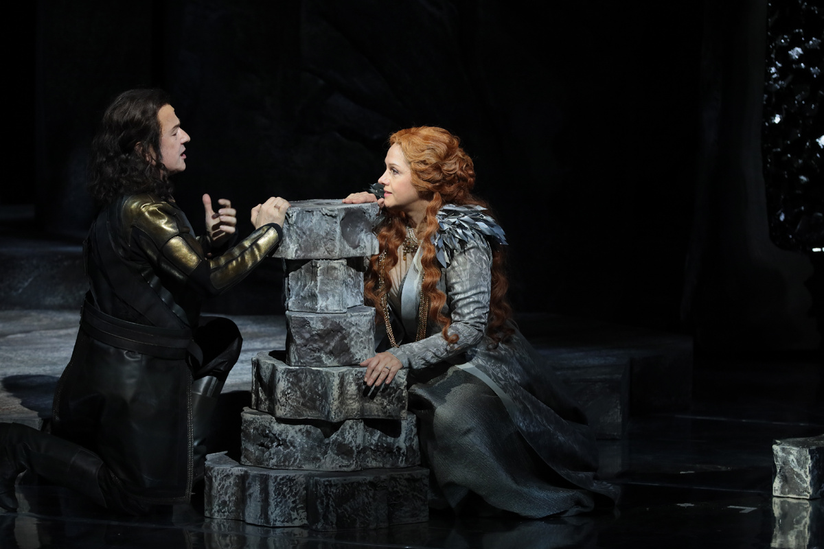 Чего нельзя сказать однозначно о солистах. Самое проблемное место московского показа – Татьяна Павловская в партии Изольды, одарившая свою героиню голосом настойчивым, но не слишком ярким, не поражающим мощью. Да и в целом для столь романтической героини явно не хватало красок и красоты собственно тембра – такой железный, а местами сдавленный звук хорош, быть может, для Брунгильды или Ортруды, но от Изольды хочется слышать и сладостного звучания, хотя бы иногда. Титульный герой оказался на этот раз более интересен: многотрудная партия Тристана Михаилу Векуа в целом по плечу, более того, он – многолетний исполнитель всего вагнеровского репертуара театра (а он огромен), он стабильно поет самые кровавые партии в операх тевтонского гения (только что на гастролях в Большом он дважды спел во всех операх тетралогии – партии Логе, Зигмунда и Зигфрида). Его мощный голос свободно кроет огромный вагнеровский оркестр. Всегдашняя прямолинейность и напор, характерные для Векуа, в этот раз несколько отступили на второй план – в его Тристане оказалось немало разнообразных тембральных красок, оттенков, партия сделана не просто с запасом прочности, но интересно. В целом убедительной была и актерская игра обоих протагонистов: в весьма статичной постановке они не «грызли кулис», что и хорошо, но стремились наполнить характеры своих героев значительностью и едва уловимыми модуляциями чувств.