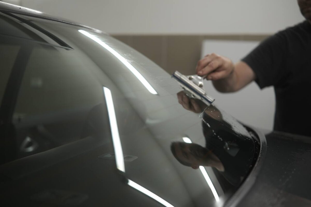 Перед началом тонировки мастер тщательно очищает стекло от загрязнений Для удаления мелких приставших частиц используется лезвие После очистки специалист отрезает плёнку и вырезает её по трафарету. У мастера, как правило, есть готовые трафареты для большинства популярных автомобилей. Если подходящего шаблона нет, его изготавливают вручную по размеру стекла Далее плёнка наклеивается на внешнюю сторону стекла и прогревается строительным феном. Это необходимо для придания материалу нужной формы После этого стекло ещё раз тщательно моется изнутри Только затем на внутреннюю поверхность наносится тонировочная плёнка _____ Звоните, пишите, записывайтесь 📍ул. Фадеева, 51А +7 (927) 267-90-70 Написать в Телеграм 📍Московское ш., 16 км, 1А +7 (937) 180-96-33 Написать в Телеграм 9-19:00 (без выходных) Подписывайтесь на наш Telegram-канал!