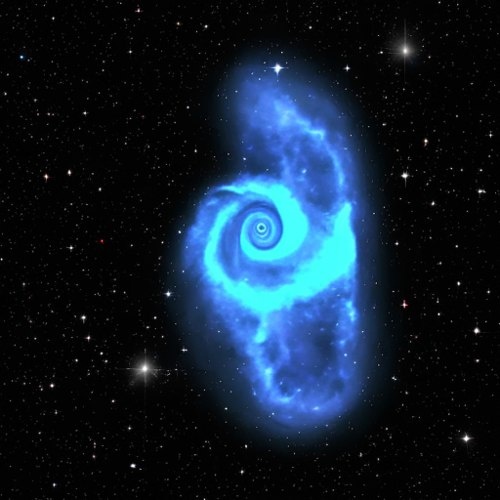 Отбросив оболочки, она сжимается в белого карлика, а её газ, растянувшийся на триллионы километров, светится под ультрафиолетовым излучением ядра. Это последняя стадия эволюции звезды, называемая планетарной туманностью. Её дуги отражают пульсации звезды перед финалом. Рассеивающаяся материя туманности войдет в состав новых звезд и планет, продолжая вечный цикл перерождения материи во Вселенной.