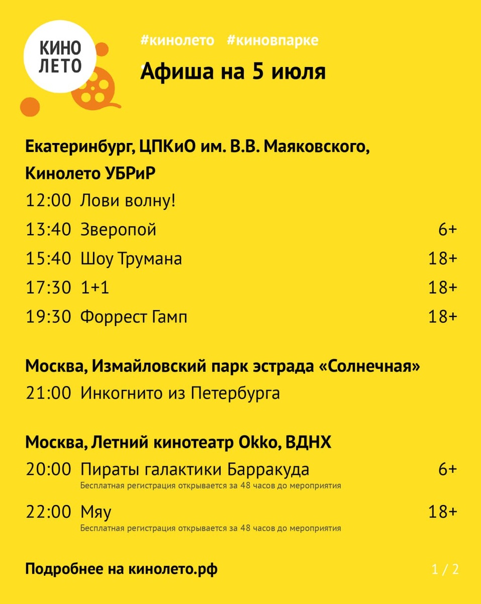 Афиша на эти выходные Возможны изменения, актуальная информация на сайте кинолето.рф Присоединяйтесь к нам https://t.me/cinegramru Обсуждаем кино https://t.me/cinegramru/8 Делимся впечатлениями https://t.me/cinegramru/7 Общаемся https://t.me/cinegramru/27 Наши стикерпаки для вас https://t.me/addstickers/DuhKinoleto https://t.me/addstickers/GhibliMovieHeroes