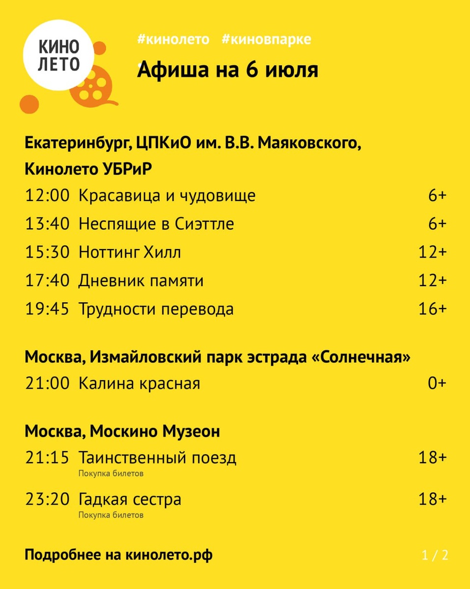 Афиша на эти выходные Возможны изменения, актуальная информация на сайте кинолето.рф Присоединяйтесь к нам https://t.me/cinegramru Обсуждаем кино https://t.me/cinegramru/8 Делимся впечатлениями https://t.me/cinegramru/7 Общаемся https://t.me/cinegramru/27 Наши стикерпаки для вас https://t.me/addstickers/DuhKinoleto https://t.me/addstickers/GhibliMovieHeroes