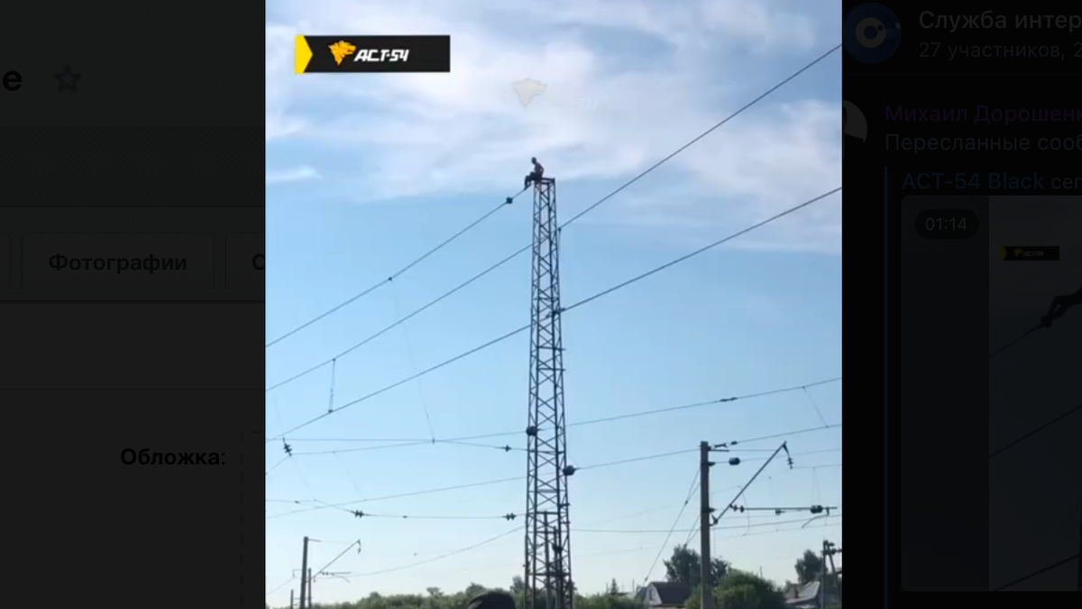 Мужчина залез на опору ЛЭП под Новосибирском