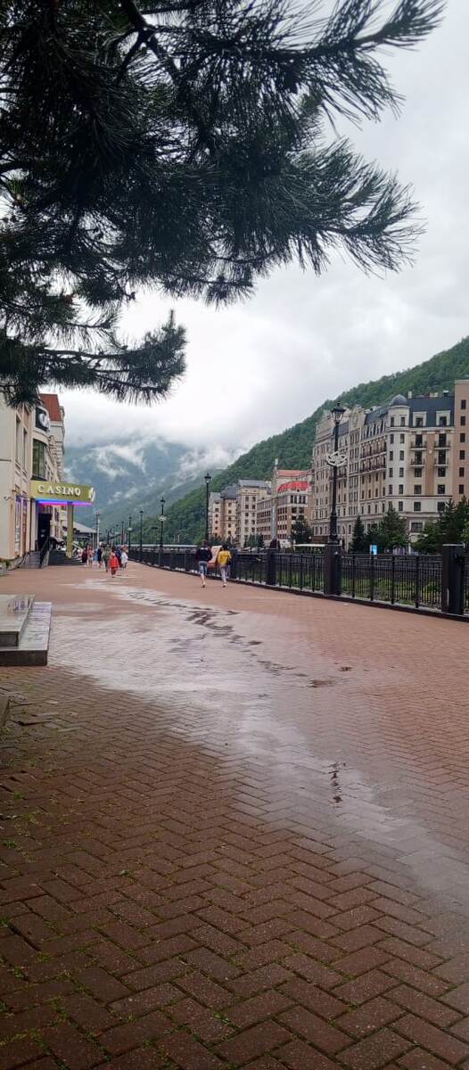 После водопадов мы не стали нигде задерживаться и сразу спустились вниз на всех подъемниках почти без остановок. А уже внизу, на Роза Хутор, нас ожидали два музея - археологии и "Моя Россия". Мы дошли только до первого: в музее всего несколько экспонатов, очень маленькое помещение, и, по факту, там делать нечего. Мы посчитали, что и в другом музее не будет ничего интересного. А потом снова начался ливень, и мы поспешили на автобус.