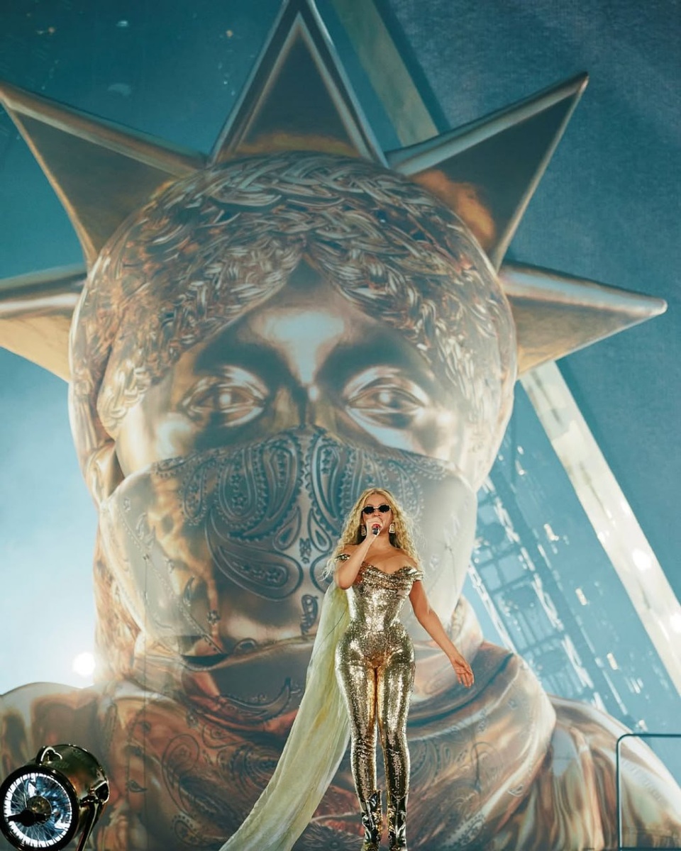 Начинаем субботу с новых образов Бейонсе, в которых она появилась на концертах в Хьюстоне и Вашингтоне. Золотой комбинезон в пайетках для певицы создала команда Vivienne Westwood, ироничный образ футбольной болельщицы и полупрозрачный костюм, напоминающий бикини, — Agent Provocateur, а боди со звездами и мантию в цветах американского флага — Alberta Ferretti под руководством Лоренцо Серафини. 🔹The Blueprint News
