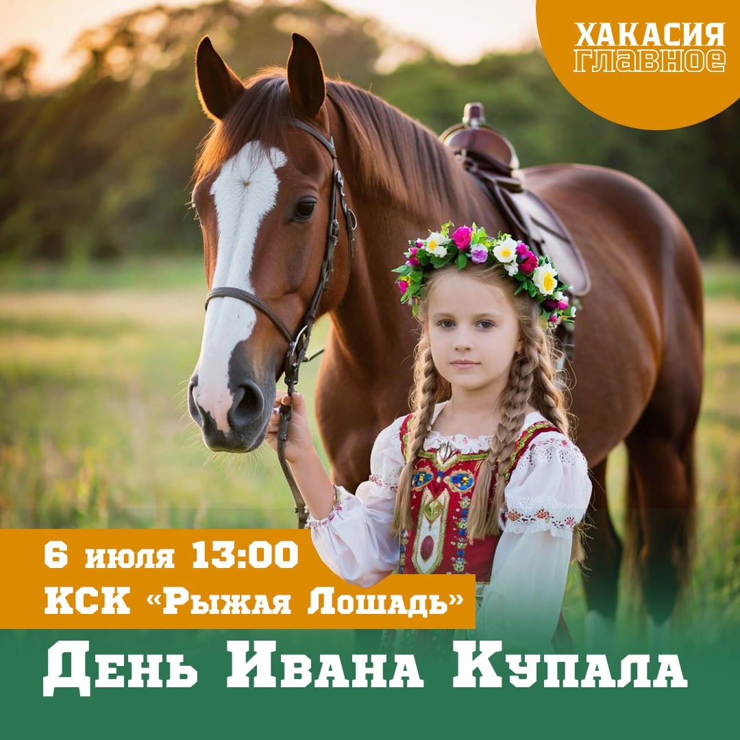 Лето зовёт на самый "мокрый" праздник! 💦 6 июля в конно-спортивном комплексе «Рыжая Лошадь» пройдёт празднование Дня Ивана Купала. Мероприятие начнётся в 13:00. В программе: 🔻концерт 🔻битва на водяных пистолетах 🔻плетение венков 🔻квест «В поисках папоротника» 🔻пенная вечеринка 🔻мастер-классы и игры Гостям также будет доступно общение с животными – лошадьми, альпака, хаски и другими 🥰 Предусмотрены катания на лошадях и пони. 📍Комплекс находится по дороге на Белый Яр 📌Контакты для справок: 31-31-40 🖼Хакасия. Главное здесь