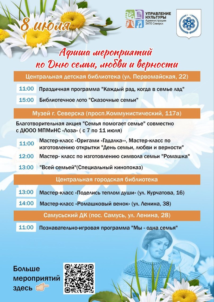 Афиша мероприятий ко Дню семьи, любви и верности.