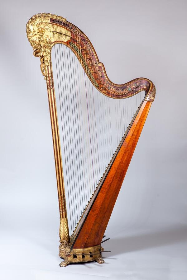 o Педальная арфа: В начале 19 века Себастьян Эрар изобрел педальный механизм для арфы, который позволил исполнять хроматические гаммы и сложные аккорды. Педальная арфа стала стандартом для современных концертных арф.