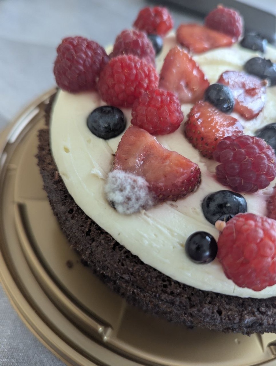 Неаппетитная добавка на лакомстве выглядит отталкивающе. Отвратительный ингредиент заметили в торте «Бернау» со свежими ягодами и творожным сыром, который читательница «Блокнот Воронеж» заказала ко дню рождения ребенка 3 июля. За лакомство, по словам собеседницы, она заплатила полторы тысячи рублей. И какого же было ее разочарование, когда на верхушке было замечено нечто отталкивающее, похожее на плесень. Неаппетитными фото она поделились с редакцией. «Торт вроде свежий привезли, но мхом он порос уже. Такой торт за 1500 тысячи ко дню рождения ребенка», – комментирует читательница. Срок годности торта – 4 суток. Судя по информации на упаковке, его приготовили 1 июля. То есть, период хранения не истек. Однако, вероятно, нарушились условия хранения клубники, которой покрыта верхняя часть продукта. Именно по этой причине ягоды могут стать мягкими и покрыться плесенью, похожей на пух. Добавим, клубника может покрыться плесенью из-за высокой влажности и температуры, поскольку этот «паразит»