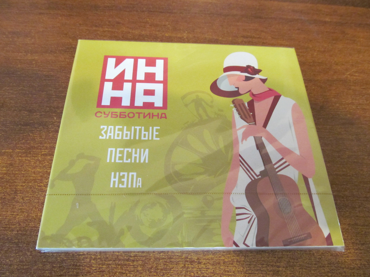 Здравствуйте, уважаемые читатели! Сегодня я немного расскажу о компакт-диске Инны Суботиной “Забытые песни НЭПа”. Напомню, что этот компакт-диск был в числе подарков от компании MMS Records, которые я получил 1 мая. За возможность познакомиться с творчеством Инны Субботиной я благодарю компанию MMS Records. Диск абсолютно новый в целлофановой запечатке. На лицевой стороне упаковки название альбома, имя исполнительницы и профиль женщины с гитарой. Упаковка картонная, цветная. На тыльной стороне помимо надписей и изображения как на лицевой стороне представлен трек-лист альбома, а также штрих-код и логотип компании MMS Records. Альбом записан и сведен осенью 2014 года. Само издание компакт-диска выполнено в 2016 году. Надо сказать, что работа над этим диском велась в контексте издания книги Максима Кравчинского “Песни и развлечения эпохи НЭПа”. Книга достаточно емкая, я ее еще не прочитал. Замечу, что в числе подарков есть еще виниловая пластинка Инны Субботиной и я позже тоже Вам о ней р