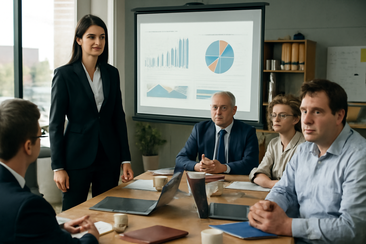 Презентация прошла в кабинете генерального директора. Присутствовали он, Сидорова и еще двое руководителей.