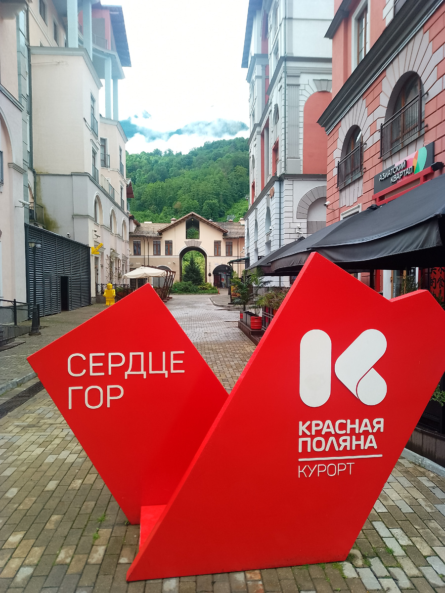 Пройдемся по центральному променаду Красной Поляны Тут полным полно разных заведений питания Мишка на привязи стоит возле очередного ресторана... А тут Красный Олень! Есть удобные сидушки для гостей... Тут припаркована телега с бидонами, наверно молочники привез молоко в Сыроварню. Летние террасы заведений. Красивые растения в горшках Даже такой магазин есть... Сзади во дворе неплохая зона отдыха Хорошо тут гулять! Вот такой вот променад... Короче на Красную поляну можно!