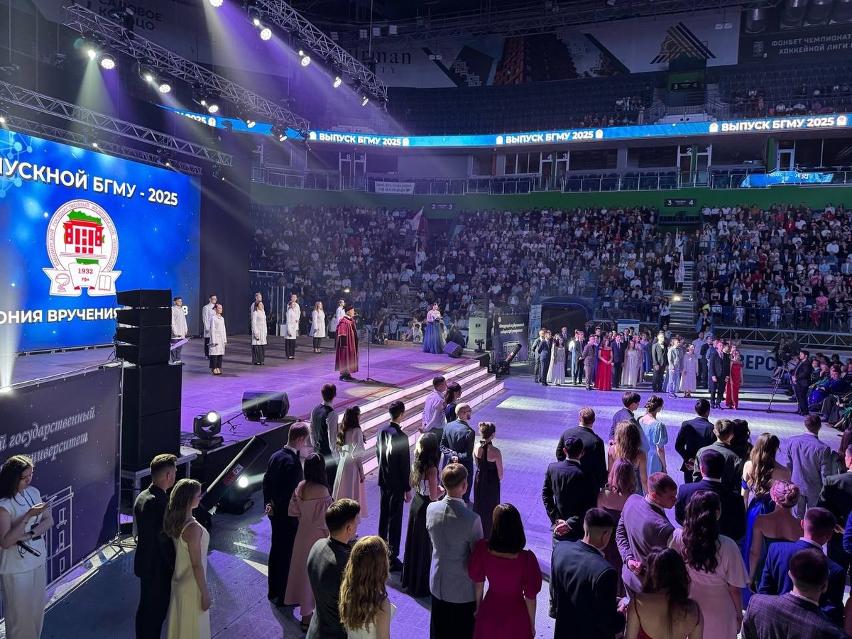 В «Уфа-Арена» прошло яркое и долгожданное событие Башкирского государственного медицинского университета – торжественная церемония вручения дипломов выпускникам. Почетные гости, сотрудники университета, родители выпускников и их друзья собрались, чтобы поздравить уже дипломированных специалистов. На мероприятии присутствовали и те, кто только планирует поступать в университет - будущие абитуриенты.